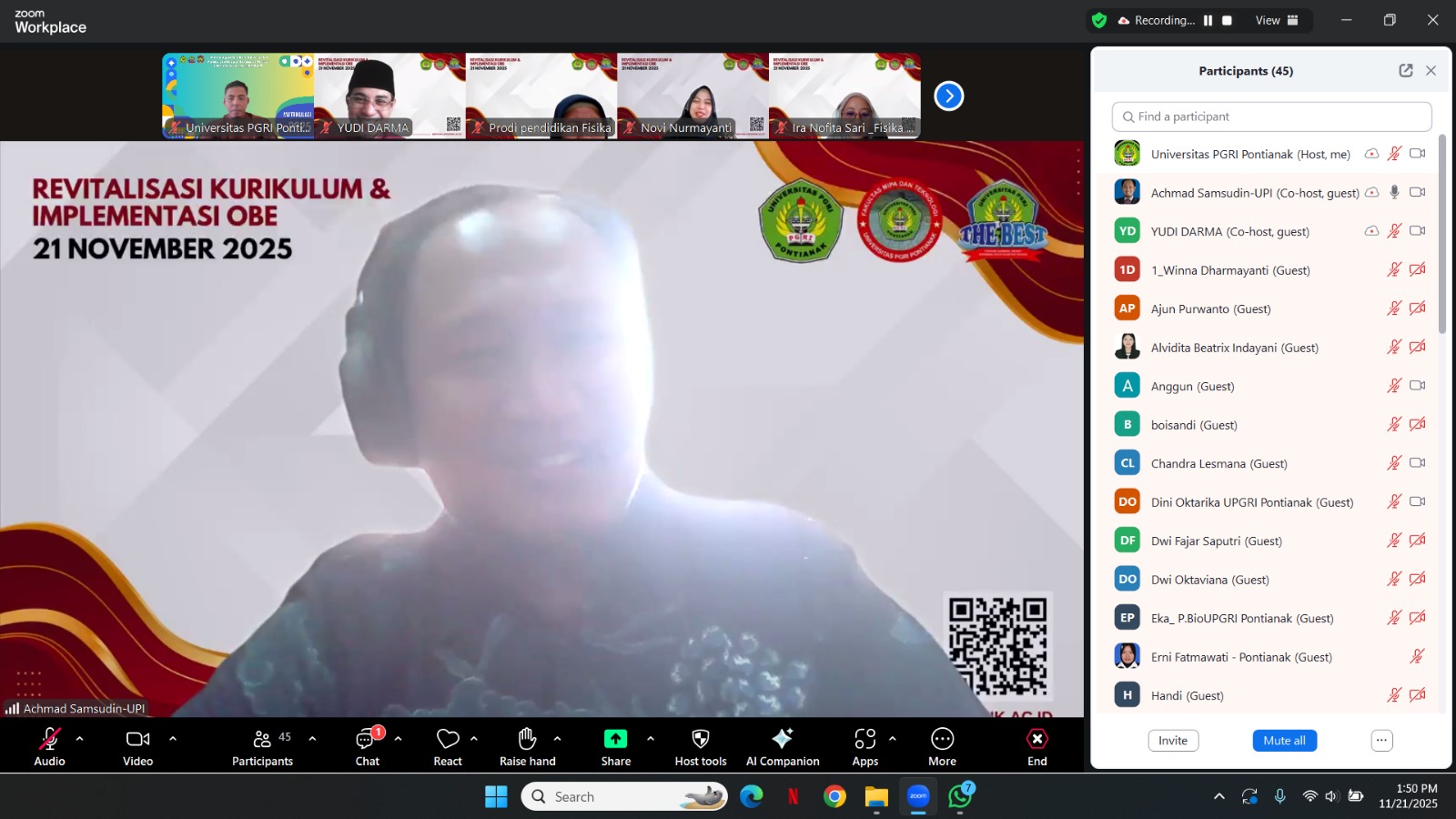 Pontianak, 21 November 2025 – Fakultas MIPA dan Teknologi Universitas PGRI Pontianak menunjukkan komitmen seriusnya dalam meningkatkan kualitas pendidikan tinggi dengan menyelenggarakan kegiatan Revitalisasi Kurikulum Berbasis Outcome-Based Education (OBE). Mengingat mobilitas narasumber dan efisiensi waktu, acara penting ini dilaksanakan secara daring melalui Zoom Meeting pada hari Jumat, 21 November 2025. Kegiatan ini diikuti oleh seluruh Ketua Program Studi, Sekretaris Prodi, serta dosen di lingkungan Fakultas.